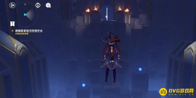 连线完成后,打开宝箱出现一个星星,一直跟着它会回到殿堂,进入水池完成一个挑战(非常简单)。