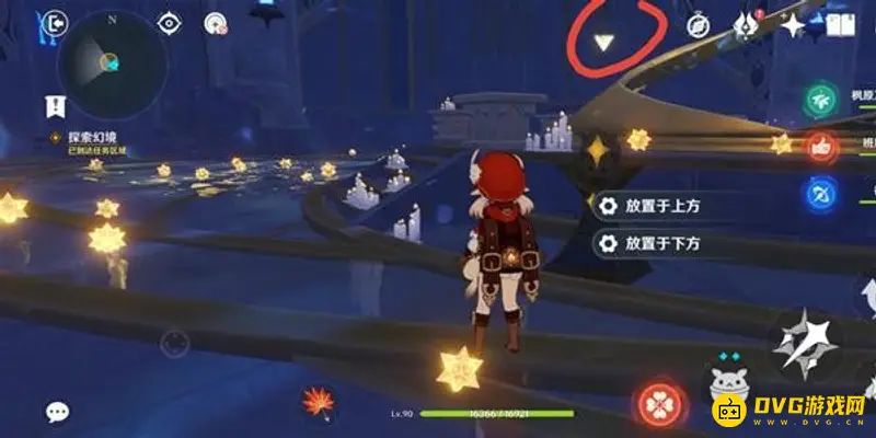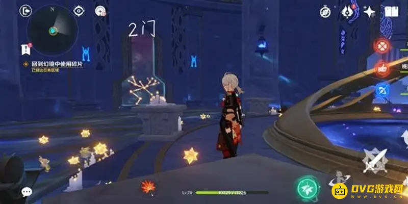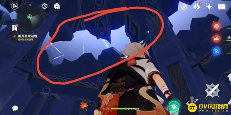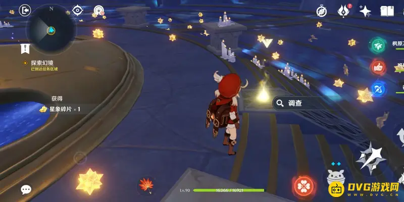 首次进入秘境,任务会提示我们进行探索,直接打开元素视野,调查所有光点,得到3块星象碎片。