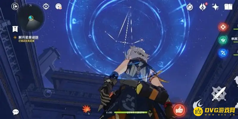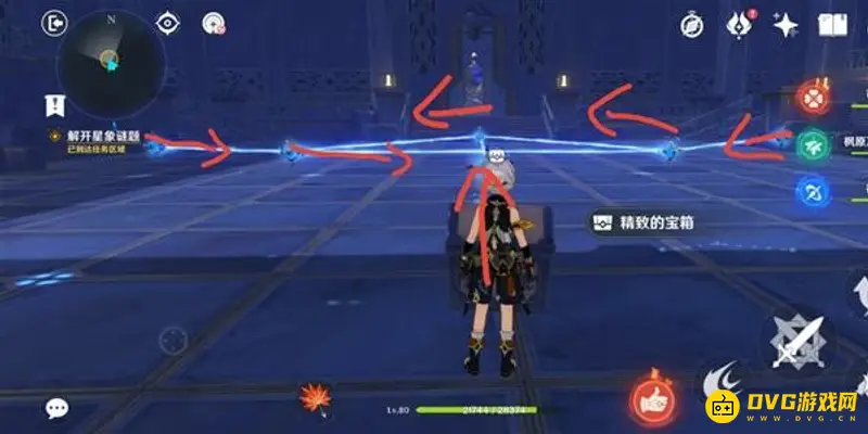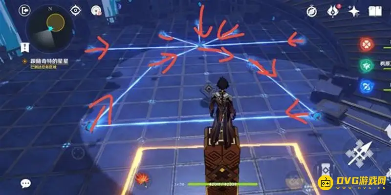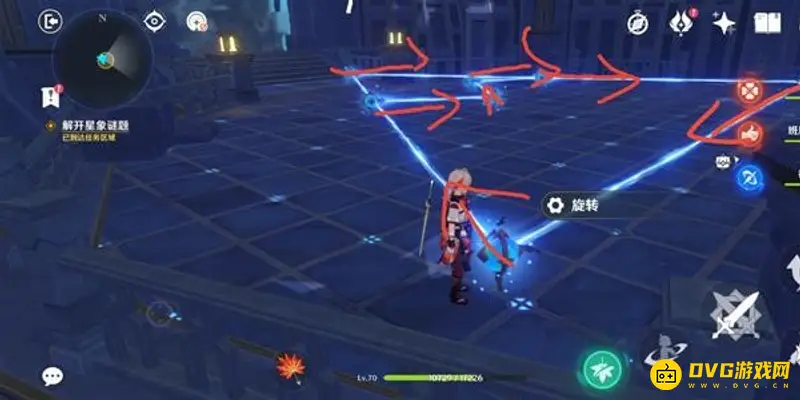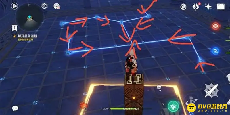 此时对应星门开启,进入后出现连线机关,需要将机关连成头顶上方的形状。