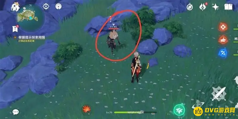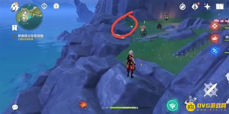 接着回到小岛上,到达图示地点,有一个正在挖土的丘丘人,他挖掘的地方就是我们要探索的点位。
