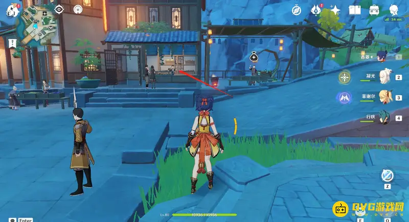 2、降落后看向东南方向,去往东南方向的店铺处。