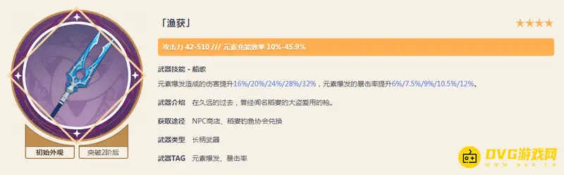 鱼叉:最近比较出名的一把武器,其实原名叫做渔获,只不过造型酷似鱼叉,钓鱼可以兑换。