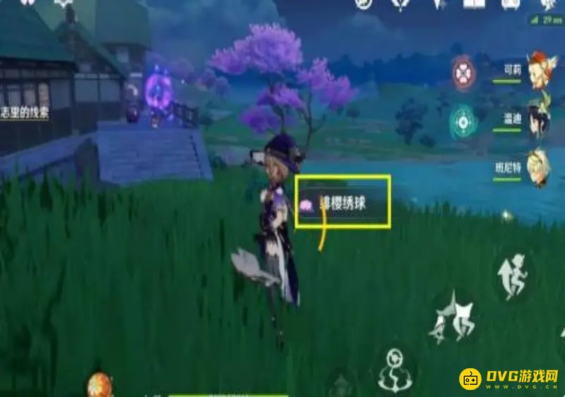 最后靠近绯樱绣球,并点击,即可采集成功。
