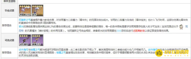 原神3.1甘雨没有专武也能玩。甘雨没有专武阿莫斯之弓是能玩的,武器可以用【试作澹月】或者【破魔之弓】这两把锻造武器替代。在圣遗物小毕业的情况下,甘雨一箭的伤害能稳定在4万 ,这个伤害还是非常可观的,大世界和深渊都够用。