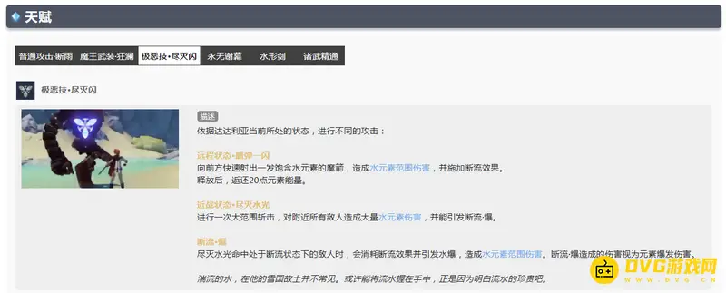 公子在攻击时可以对敌人施加断流,当敌人被击杀时,断流会爆炸影响周围敌人,并给周围的敌人附上断流效果,这样一个接一个的断流让公子对群输出极大加强,并且元素爆发的群体攻击也是非常强势的。