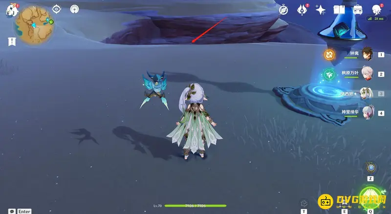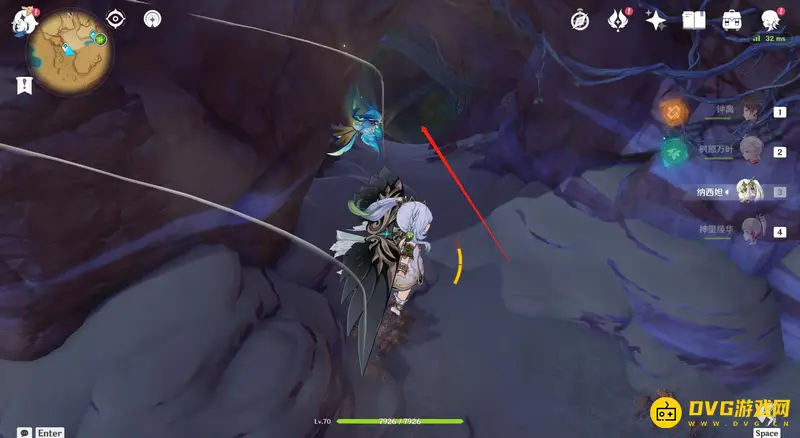 3、在空中时看向东北方向可以看到一个洞口,进入其中。