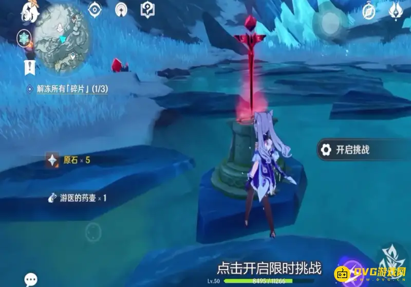 3、找到以后带回到石台上,点击开启限时挑战。