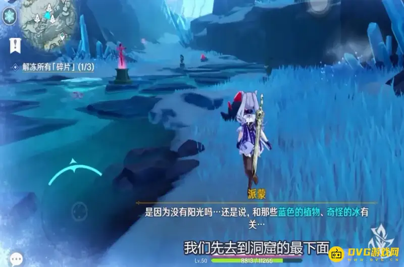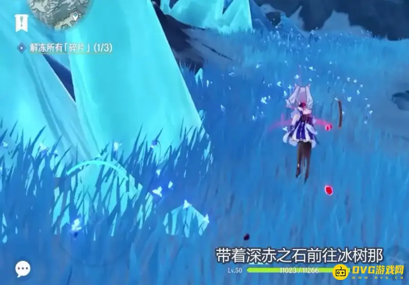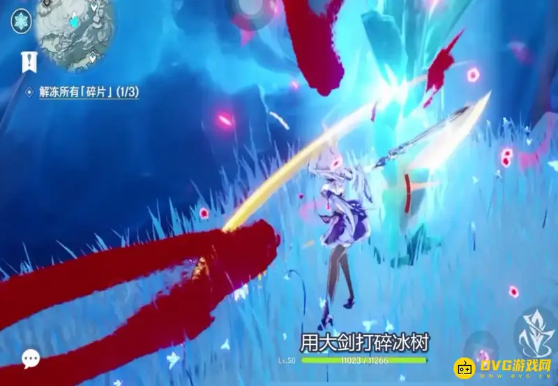 6、带着深赤之石前往冰树那,用大剑打碎冰树。