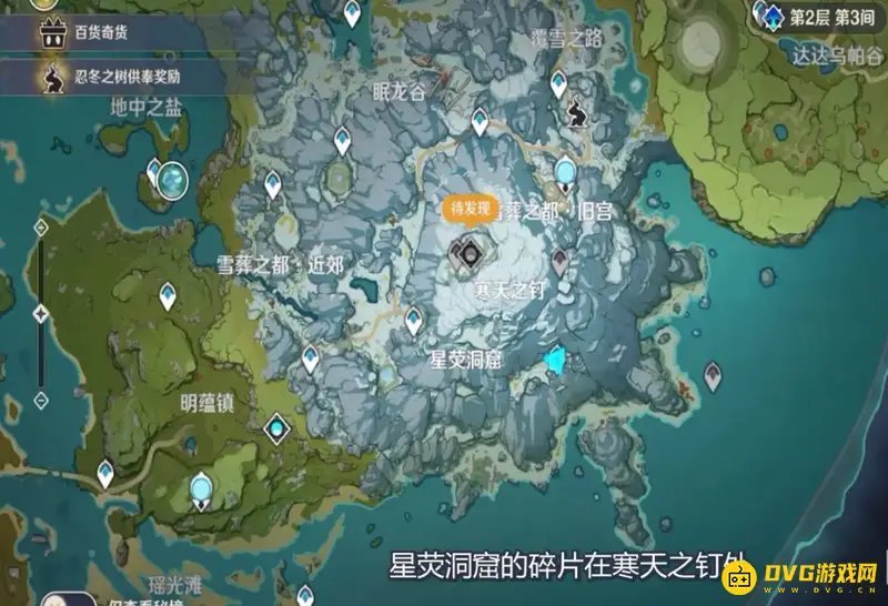 1、星荧洞窟的碎片在寒天之钉处。