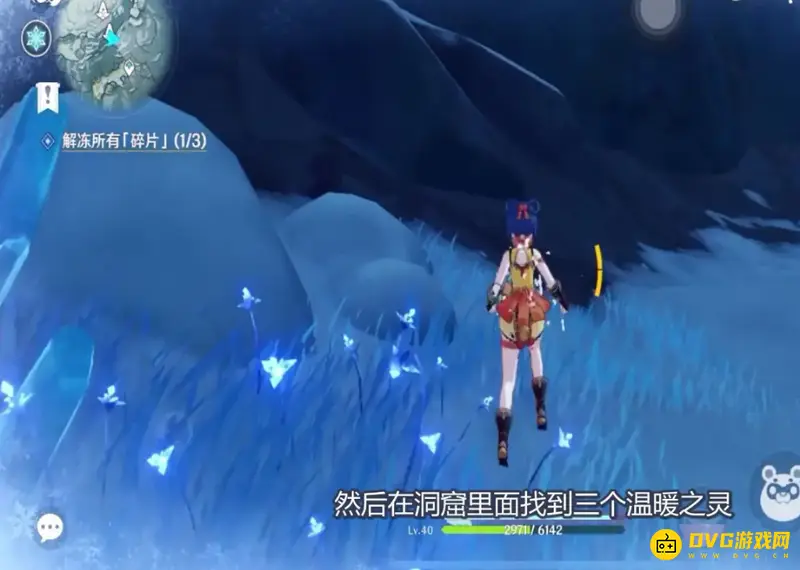 2、我们先去到洞窟的最下面,然后在洞窟里面找到三个温暖之灵。