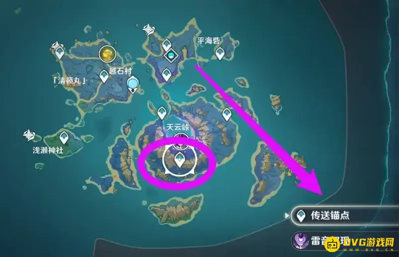 3、在清籁岛的天云峠找到雷音权现,选择传送锚点,进行传送。