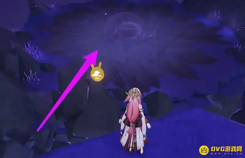 4、然后滑翔至中间的紫色波浪的位置。