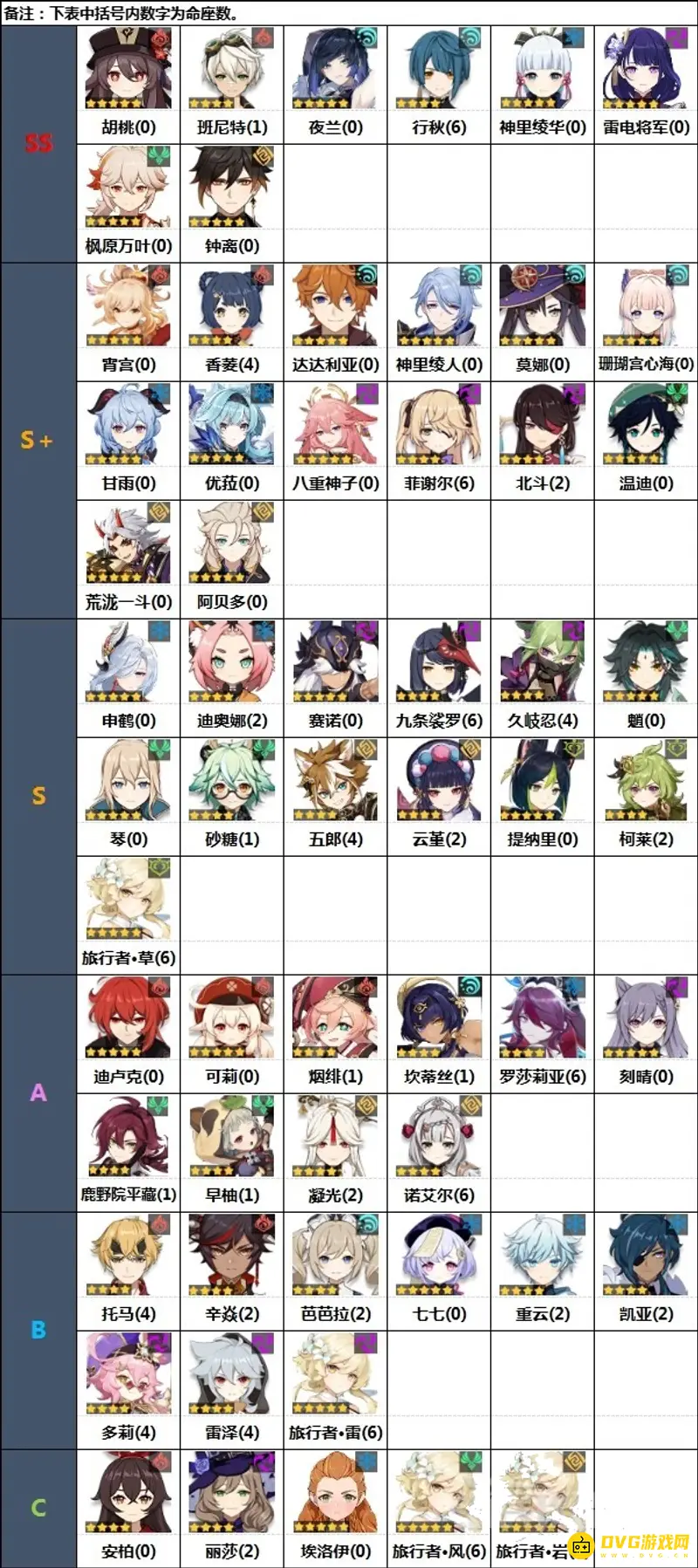 该排行基于能使每个角色发挥最大能力的装备以及在团队中的定位,例如,如果输出能力较低,而辅助能力较高,则选用辅助能力来参与评价。该排行同时考虑了与当前环境最强类型的角色的兼容性,以及是否具有最合适的装备等因素。因此某些角色的评级会高于单项表现,或某些角色的评级会低于当前表现的水平。