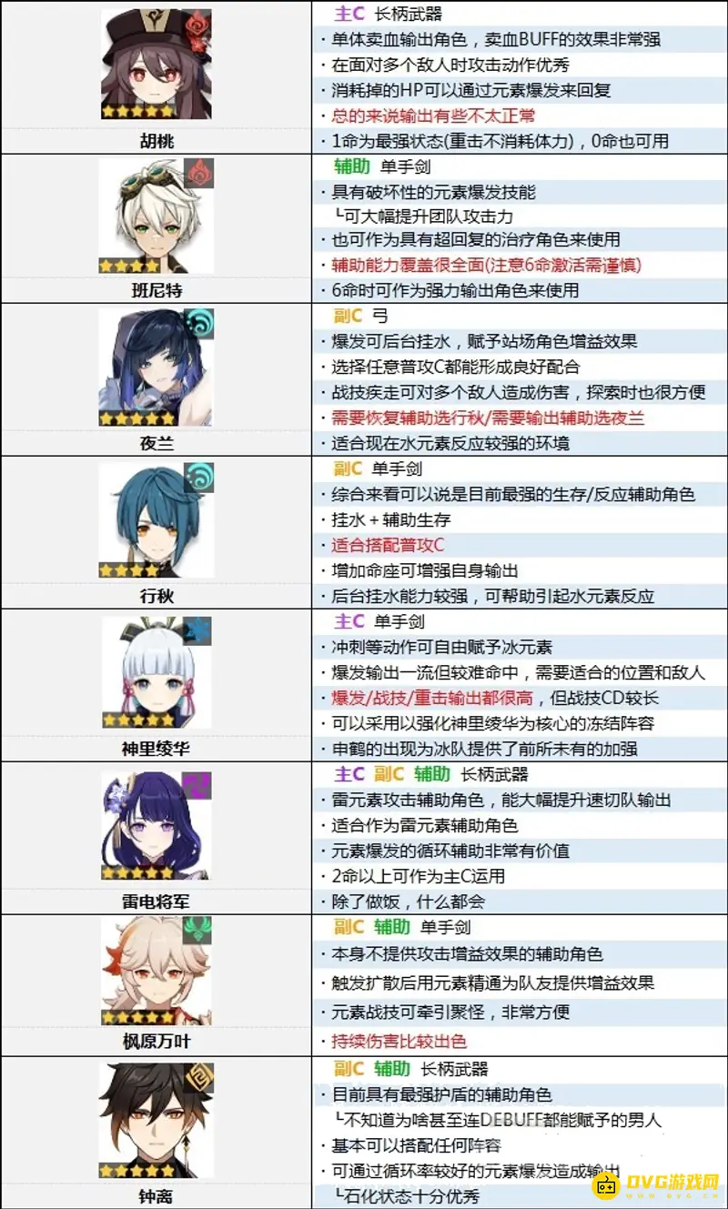 3.1版本角色强度第一梯队:胡桃、班尼特、夜兰、行秋、神里绫华、雷电将军、枫原万叶和钟离。