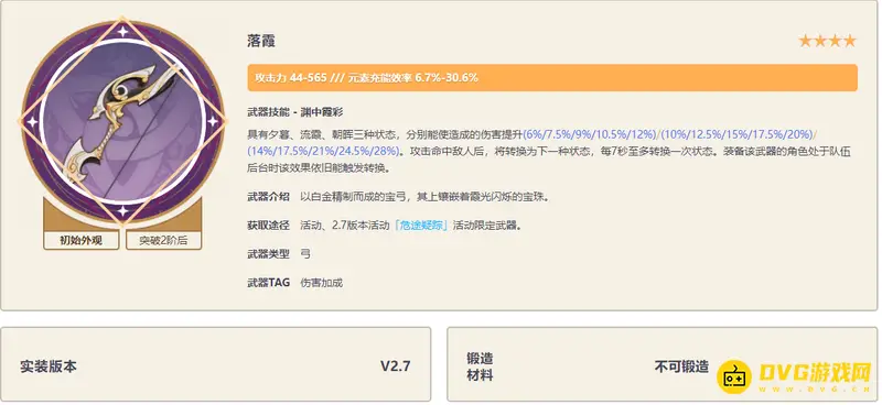 不值得练,算是一把过渡武器。一把中规中距的四星弓。最大的优势能通过活动免费获取并满精。落霞同时提供了一定的充能和增伤,适合依赖大招的输出型角色,是一把不错的过渡武器。武器的缺点也很明显,实战中要配合朝晖状态打爆发比较麻烦,依赖特定的输出轴。