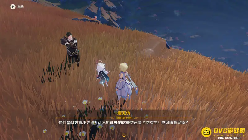 在前往获取千年千岩任务道具-「远眺之花」的山崖处会碰到一个奇怪的人-唐无仇,将他身边的清心采光后开启隐藏任务-岩巅大侠往事