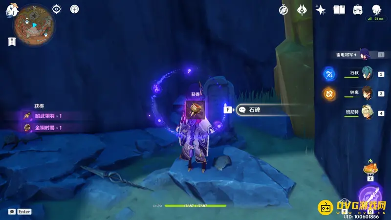 阅读石碑的内容后与阿望对话,完成任务获得成就「唯千岩不动」