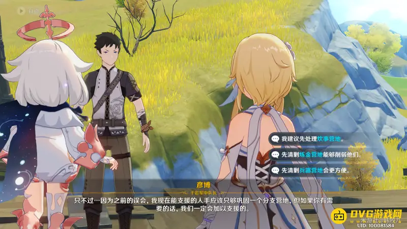 千岩军会帮助旅行者先清理掉一个营地(就是对话中选择的那个)。