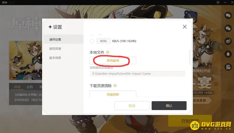 首先我们进入原神的设置界面,点击查找本地文件下的查找游戏。即可查看原神当前所使用的内存。