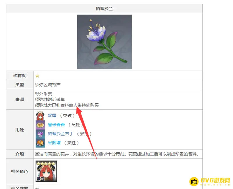 原神中有卖帕蒂沙兰的商人。在原神游戏中,帕蒂沙兰是稀有度为一星的须弥区域特产,玩家可以在须弥城附近采集,也可以前往须弥城大巴扎香料商人朱特处购买。