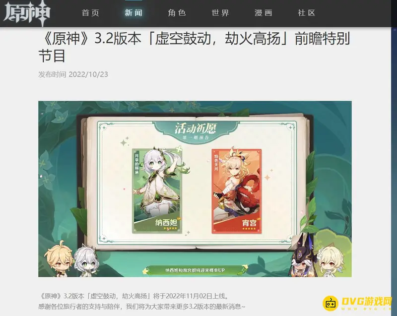 3.2版本将于2022年11月2号上线。根据官方的3.2前瞻直播公告可以得知,原神将于2022年11月2号更新3.2版本,等待11月2号的更新结束后,就可以登陆游戏开始3.2版本的探索了。