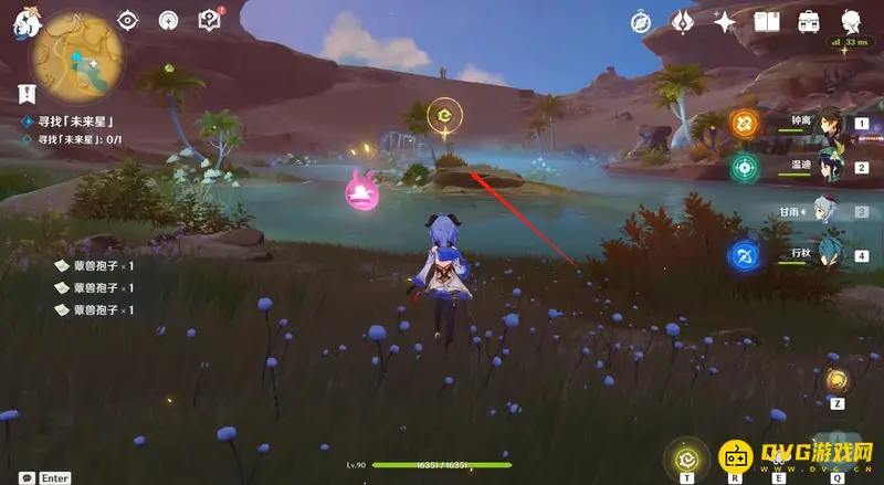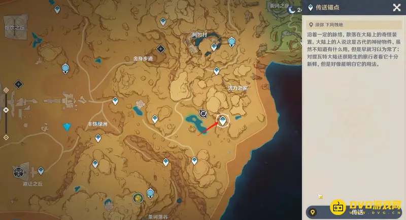 5、清理掉蕈兽后看向东南方向,可以看到绿洲中心有个四叶印,利用四叶印直接飞到绿洲中心。