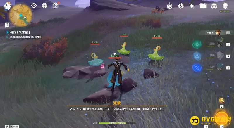 4、靠近调查点后会出现三波蕈兽,将这三波蕈兽清理掉。