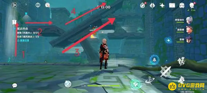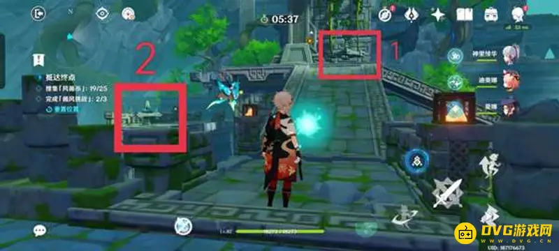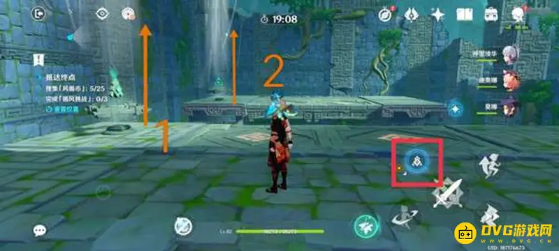 6、关闭风场,走到平台上再打开风场,收集风循币。