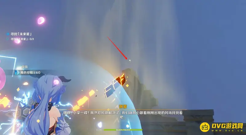 8、三个怪物都击败后系统会强制调整视角,这时就可以看到第二天的未来星了,利用风场飞上去就可以拿到。