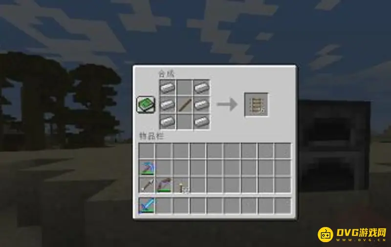 合成的摆放方式是:将铁锭放置在第1、3、4、6、7、9格中,将木棍放置在第5格中。