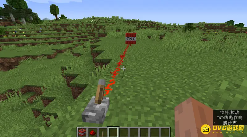 2、在摆放TNT用红石将拉杆连接起来之后,玩家对着拉杆点击右键,即可激活TNT。