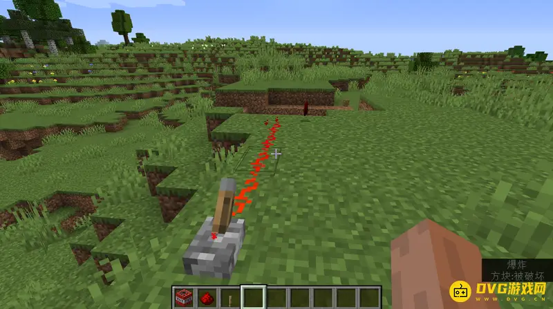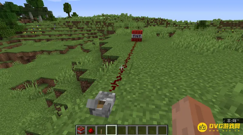 1、进入游戏中,玩家在点燃TNT的时候如果逃跑不及时会炸到自己,而玩家使用红石点燃TNT是决定安全的,如图所示。