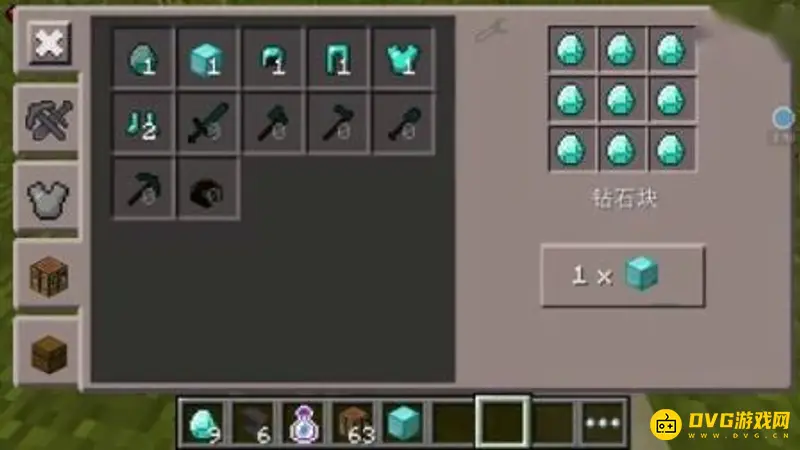 (2)选择一个要刷的物品,放在背包的第一格,然后将物品扔掉,扔掉一个相同的物品扔掉,在去捡起这两颗被扔掉的物品。然后按前面第二个格子,钻石就会被刷出来。