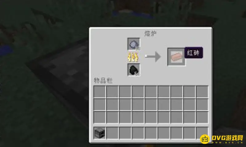 2.然后把挖来的粘土利用熔炼炼成红色砖头其实就跟现实生活中一样的。熔炼需要石头才能合成。