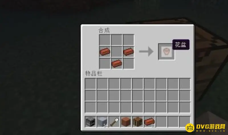 3.烧成的红砖头我们需要利用工具箱将其按照如图的摆设合成花盆,跟船的合成差不多。