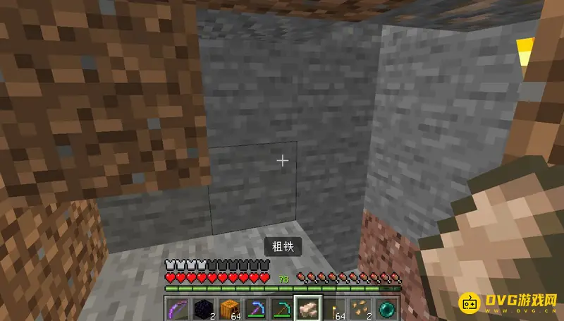 1,例如我们可以去地下矿洞中找到铁矿,然后我们用镐子挖铁。