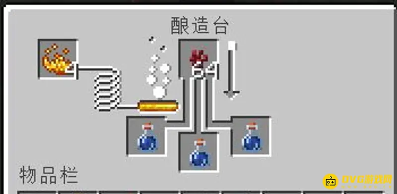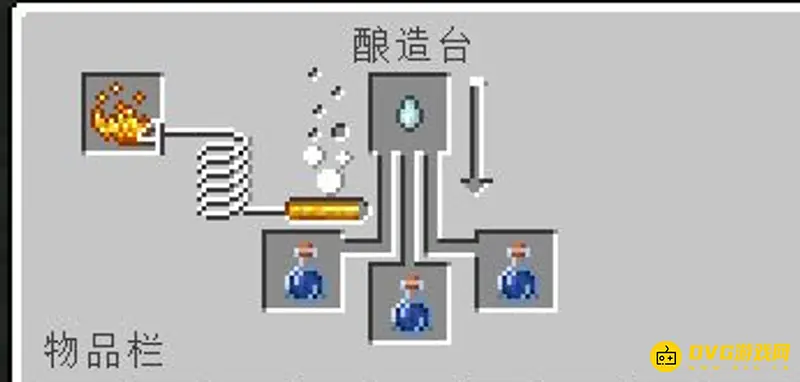 3、然后炼药台放进水瓶,烈焰粉,地狱疣。