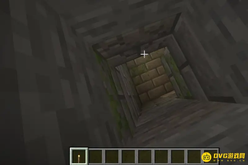 4、到达地牢上方,再垂直向下挖掘方块。