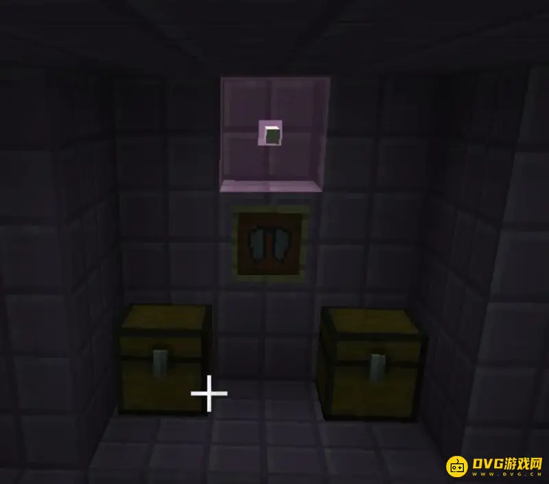 6.然后进入末影船内,在最高处就能看到墙上挂着鞘翅,两边是箱子。我们用手打掉鞘翅就能获得鞘翅了。