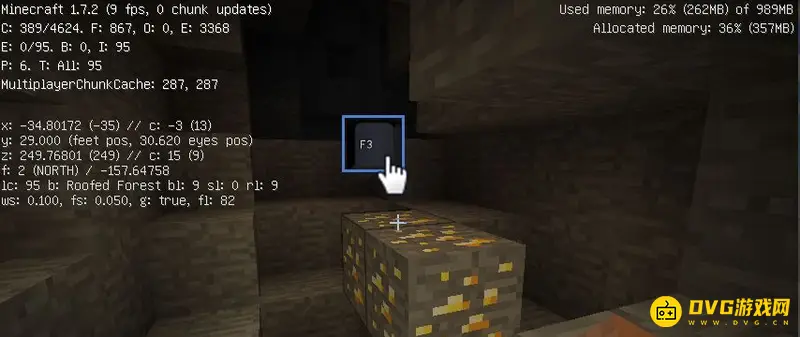 1.在游戏中首先要做的是记住自己出生点的坐标,想要看坐标点击键盘F3即可打开。