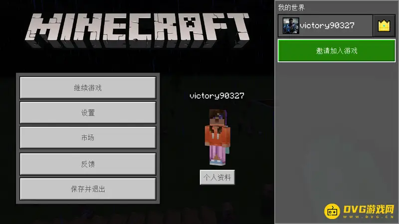 1.首先打开游戏,进入游戏界面,需等待Xbox账号登录(进入游戏后,Xbox会自动登录)当登录成功后你的游戏ID会由Steve变成你的Xbox账户ID (以图中victory90327为例),注意:一定要等待Xbox登录成功,不然会无法联机。