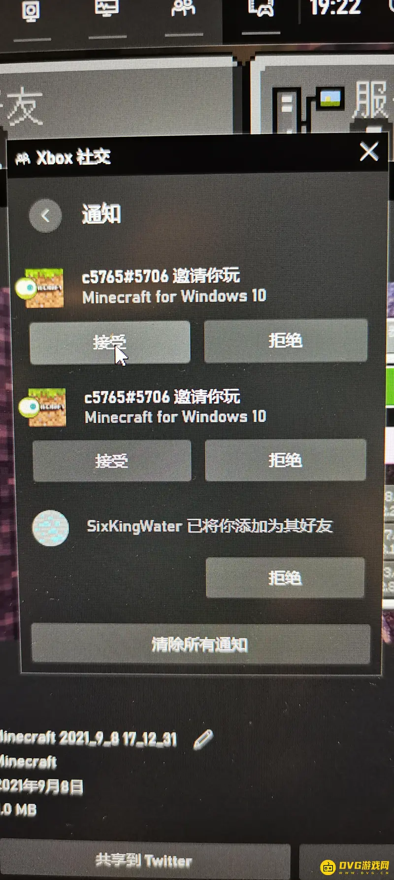5.你的好友收到邀请后,需要按住开始键+G,进入Xbox社交,接受邀请,即可进入游戏,你和你的小伙伴就能一起玩了。