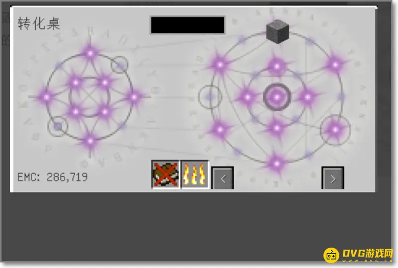 5.当玩家所拥有的emc不足以拿出此物品,转化桌则不会显示该物品。(当前图片内emc为286719,小于此剑的286720,因此不会显示此剑)。