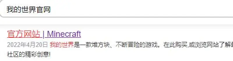 1,首先我们进入浏览器搜索我的世界官网,点击进入官方网站。
