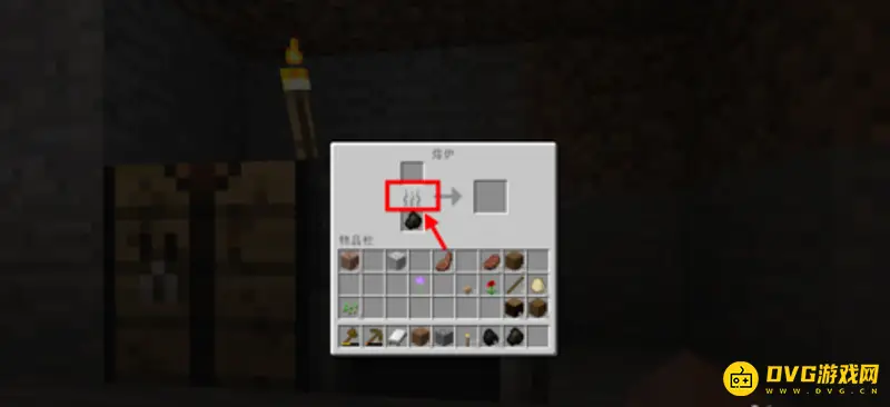 5.左侧第一格放置需要加工的物品,第二格放置燃料,右侧的格子取出成品。