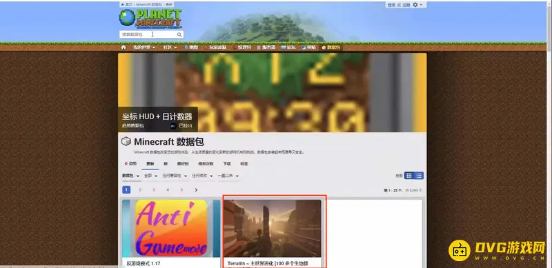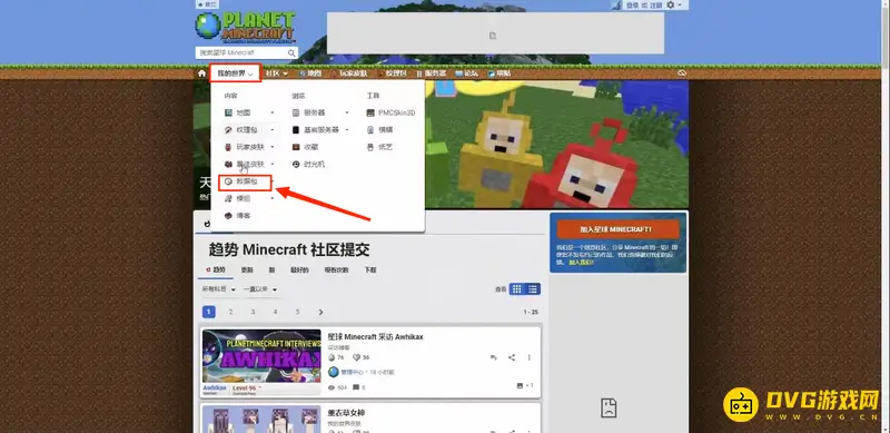 2、进入网站点击我的世界,然后选择数据包,点击。