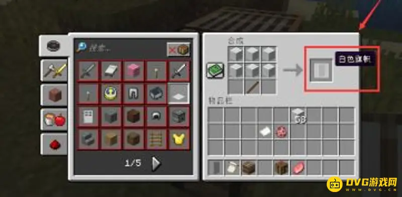 3、我们得到旗帜图案以后,需要使用任意颜色的羊毛和木棍合成旗帜。