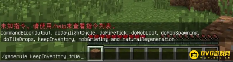 6.如果你想改回来,让死亡仍然会掉落,就在输入框中输入 /gamerule keepInventory false,再按下回车