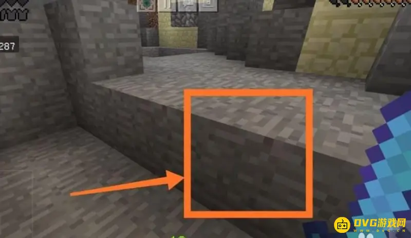 我们拿着稿子,来到野外,使用镐子挖掘圆石,如图即为圆石石块,挖取即可。