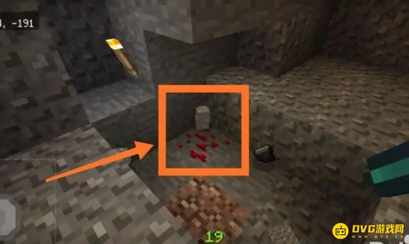 红石也一般分布在矿洞之中,接近地底的地方,一般红石必须使用铁镐以上才能挖取,如下图,即为红石石块;